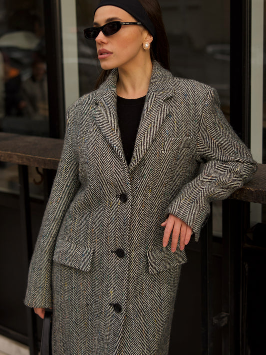 Green Herringbone Masculine Wool Coat