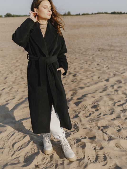 Sold outXS S M L XLBlack Wool Coat with Belt