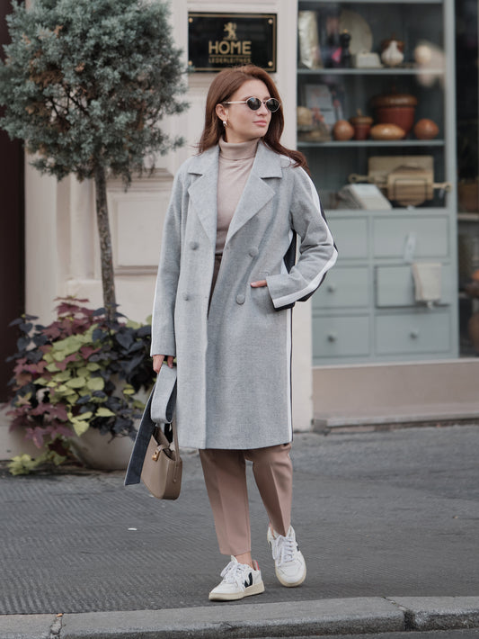 Three-color Midi Wool Coat