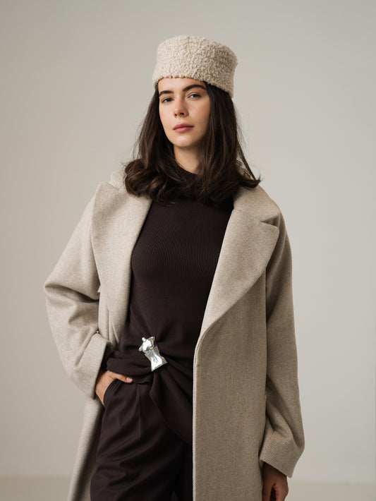 Merino Wool Pillbox Hat, Ivory