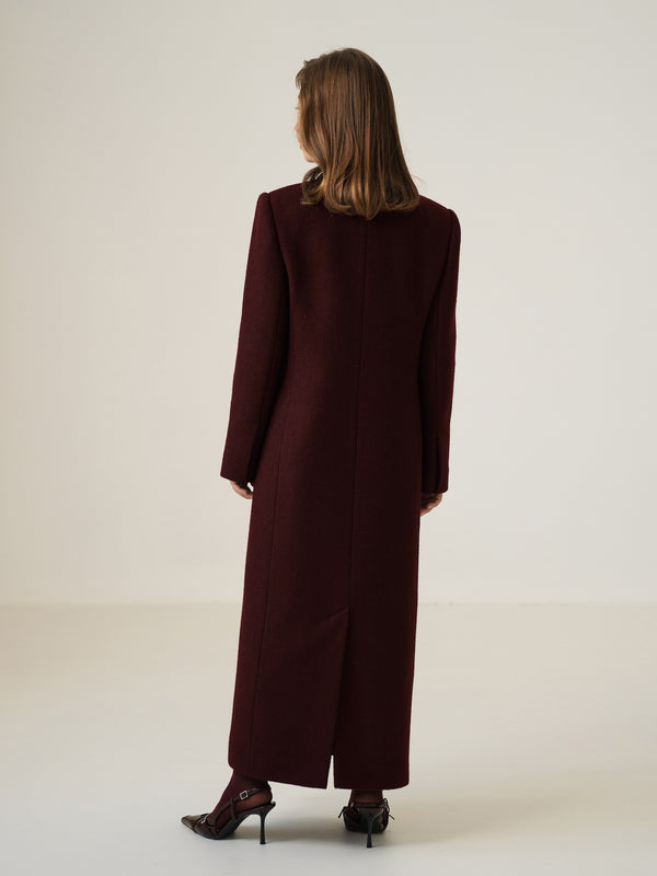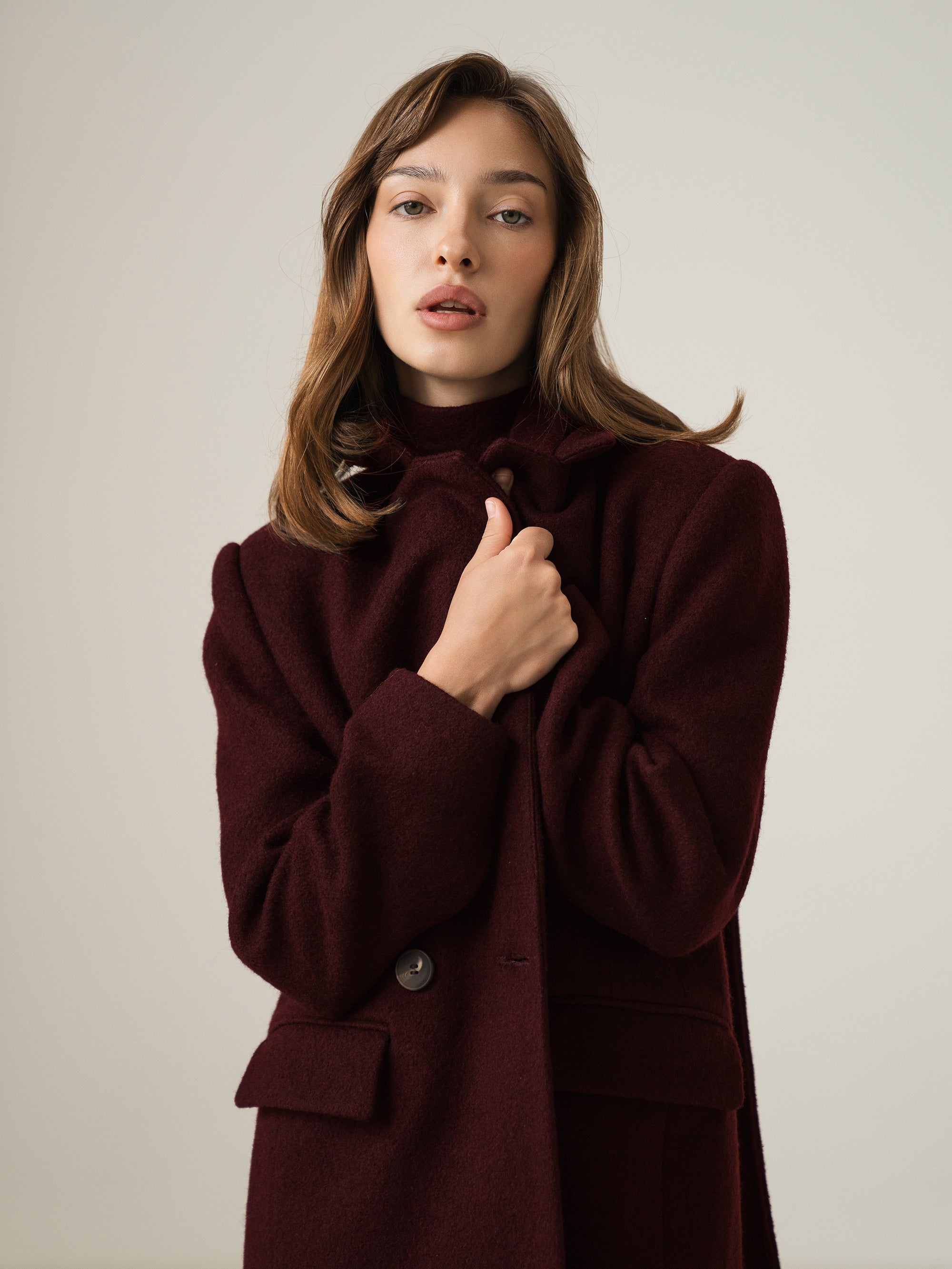 Burgundy Oversized Wool Coat – a statement of power, elegance, and warmth. Designed with inspiration from classic menswear, this coat blends timeless tailoring with modern sophistication.